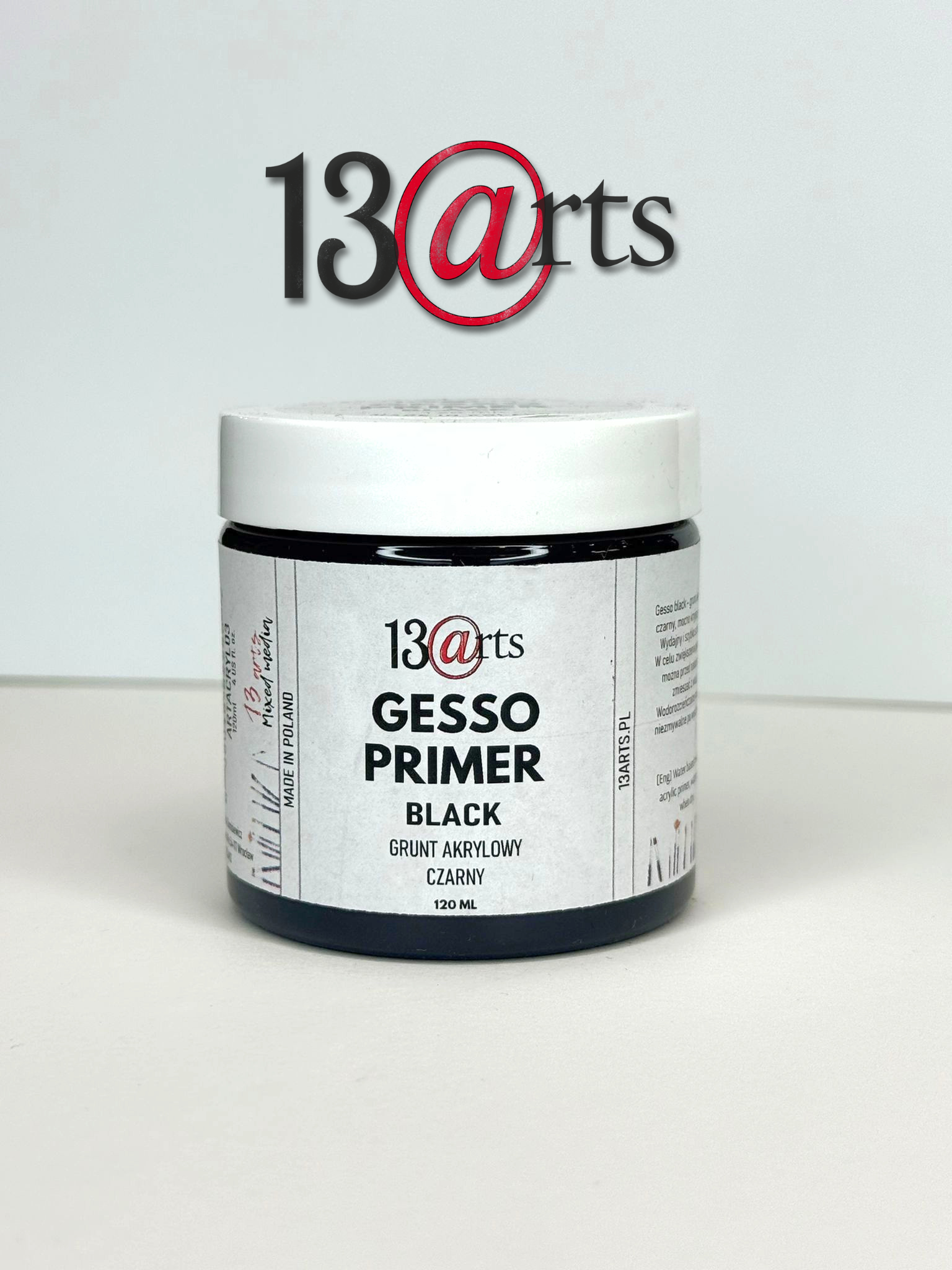Gęste, czarne, szybko schnące gesso. W celu zwiększenia płynności można przed nałożeniem zmieszać z wodą - dzięki temu  gesso jest bardziej wydajne. Jest to czarna pasta o znakomitych własnościach chłonnych. Produkt jest też nazywany podkładem, gruntem do akryli i może stanowić doskonałą bazę dla każdej techniki malarskiej. Gesso izoluje kolor od podłoża gwarantując przyczepność i przedłużając żywot obrazu. Łączy się z każdą powierzchnią: papierem, plastikiem, płótnem, drewnem czy ceramiką.