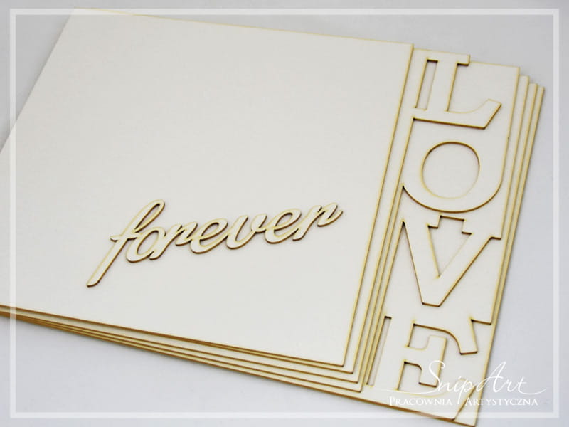 Baza albumowa składa się z czterech kart podstawowych, odpowiednio z literkami L O V E, okładki przedniej o wymiarach 200mm x 200mm, okładki tylnej o wymiarach 247mm x 200mm oraz z napisu "forever" o wymiarach ok. 125mm x 45mm.